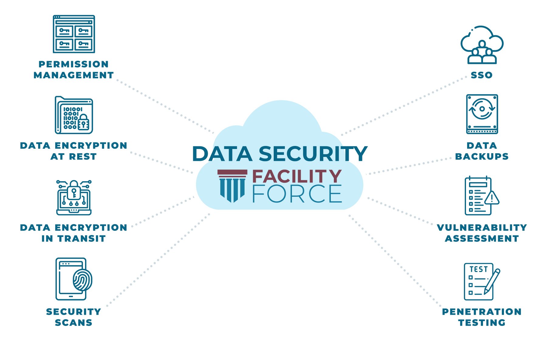 FacilityForce provides comprehensive data security solutions specifically designed for government facilities, ensuring the protection of sensitive data and compliance with stringent government regulations.